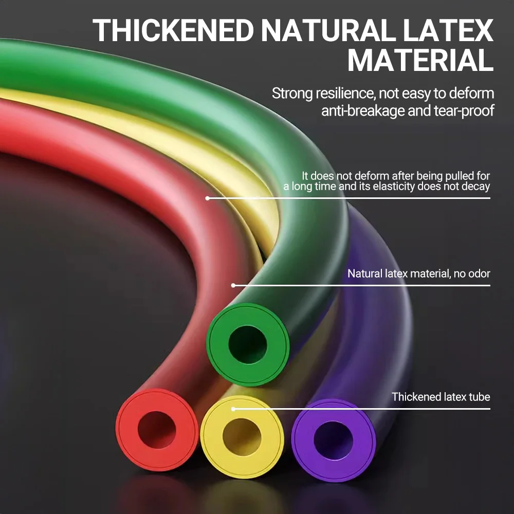 11set 80LB: 3 tension ropes, 1 storage bag, 2 climbing buckles, 2 foam handles, 2 metal ankle rings, 1 safety door buckle, 13 fitness tutorials